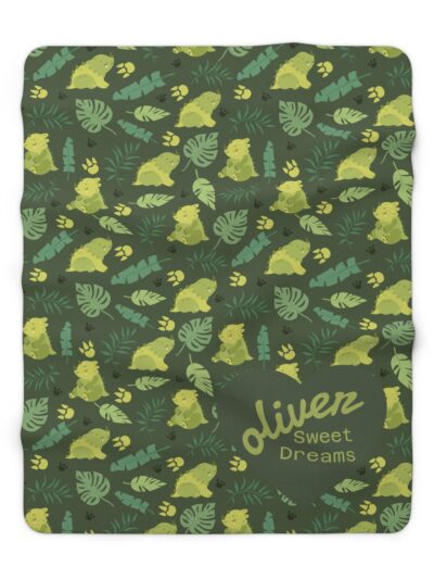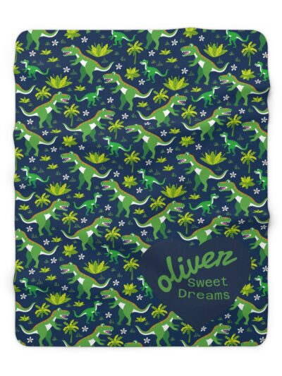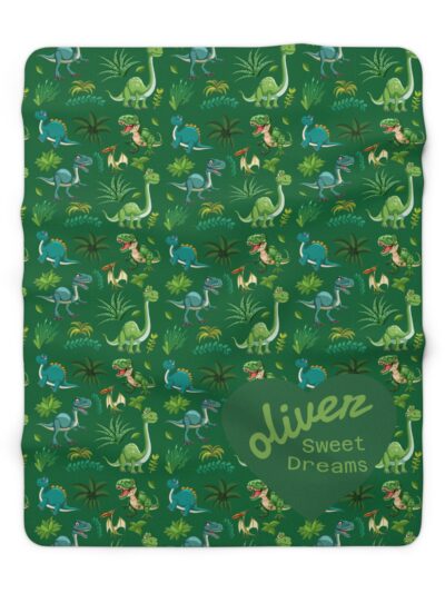Personalization Dinosaur Sherpa Fleece Blanket, Perfect for Kids
