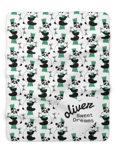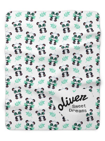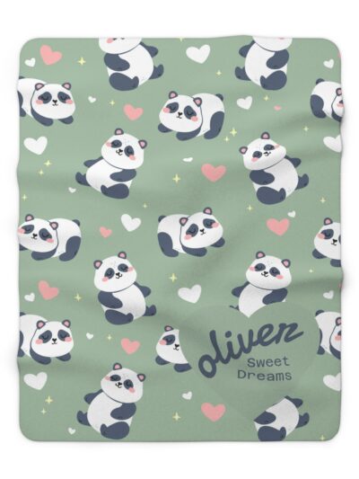 Personalization Cute Panda Sherpa Fleece Blanket, Cozy Gift for Kids
