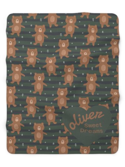 Personalization Cozy Bear Sherpa Fleece Blanket, Perfect for Gift Friends