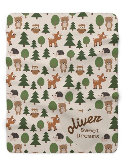 Personalization Cozy Forest Friends Sherpa Fleece Blanket